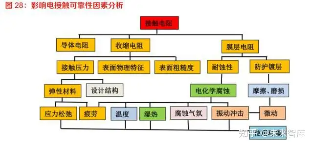 铜材品质是影响接触件性能的根本因素。铜材是制作连接器导电核心零件——接触件的基础材料, 其品质是直接影响连接器接触件电接触可靠性的关键因素。在所有影响因素中,接触件铜材品质是最根本的,也是最基础的。在不同环境下使用的连接器接触件插合后,接触电阻由收缩电阻、 膜层电阻和导体电阻三部分组成,铜材品质对组成接触电阻的这三部分电阻都有影响。收缩电阻 除正压力还取决于设计结构(尺寸精度)外,正压力、表面物理特征(细晶结构)和表面粗糙度 都与铜材品质有关;膜层电阻取决于铜材的耐腐蚀性和防护镀层质量;导体电阻取决于材料类别, 如标准规定 1mm 的镀金接触件接触电阻;铜合金 5mΩ、铁合金 15mΩ。